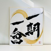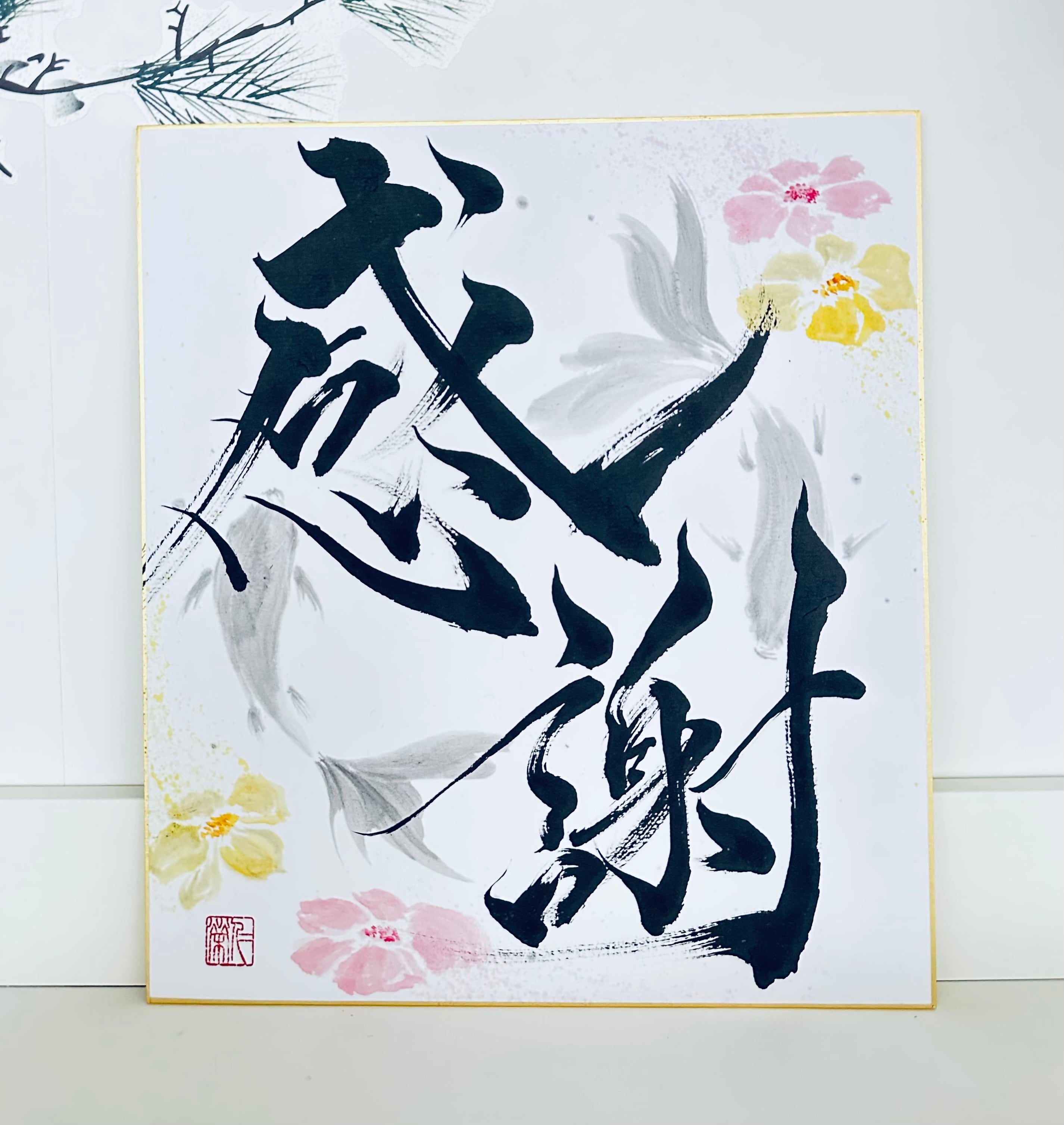 背景の上に、座右の銘などのお好きな言葉をお書き致します。